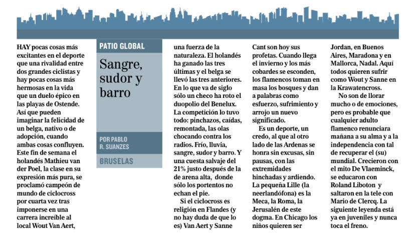 27-10-2020 Momentos estelares. “La vida se vive de mil maneras diferentes, se siente de un millón de formas simultáneas, pero se define en apenas unos cuantos instantes. Momentos clave, episodios que sintetizan experiencias muchísimo más grandes y complejas. Intentar resumir así mi vida belga es un ejercicio frívolo, pero si cierro los ojos y pienso rápido, lo que viene a la mente son siempre las tres mismas lecciones. Anécdotas que marcan con moralejas que perduran.